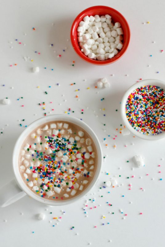1. Hot Chocolate with Sprinkles: Put some color in your cup of hot cocoa with some rainbow sprinkles.