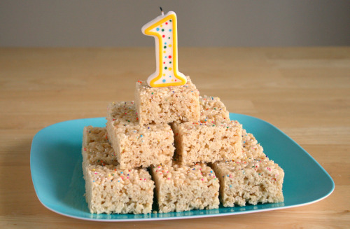 19. Rice Krispie Treat Cake: Turn Rice Krispie Treats into a birthday cake with sprinkles and candles!