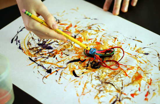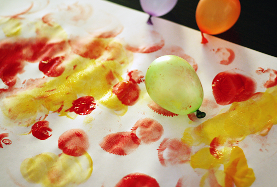 I always seem to have a few random balloons around my house. Put those balloons to work during your next painting session. Try dipping them in paint and bouncing on your paper, or bounce them on a full page of wet paint to lift and move the paint around. You might want to take this fun project outside! A small kiddie pool is great for mess containment!