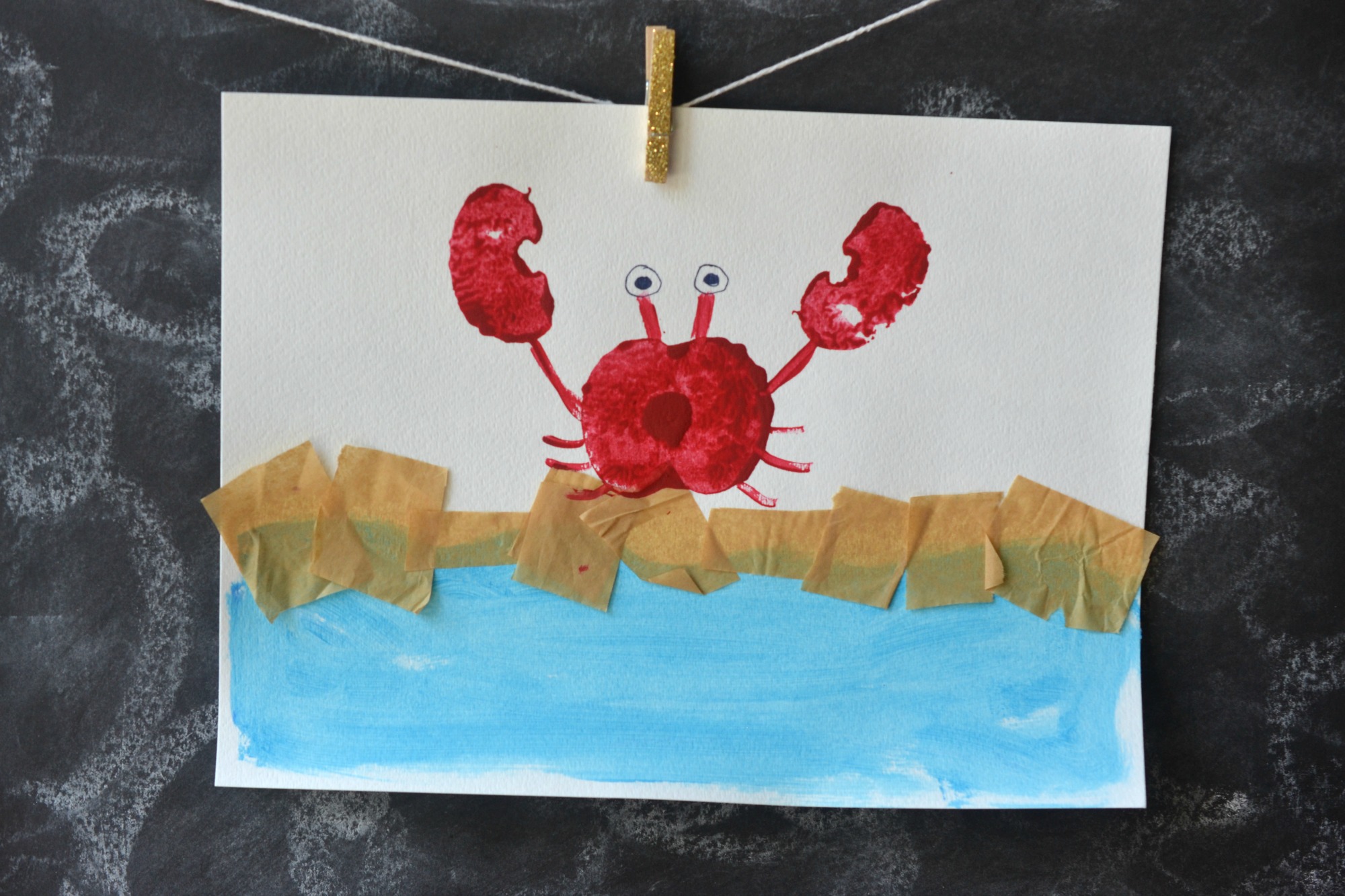 When it comes to kid crafts, I’ve been trying to think outside the box and share some ideas that can be done on a simple budget & with attainable items everyone has in their reach. And no doubt – today’s Apple Stamped Crab Kids Craft is super easy & as cheap as it gets! In fact, I bet you already have all the materials you need to make it in your own kitchen!