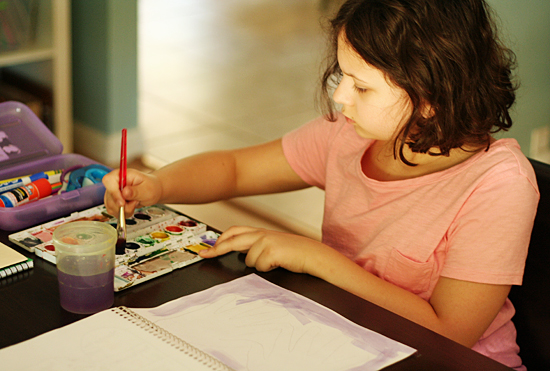 For quite a few years, my girls have been keeping journals. They write about family activities, make lists of favorites, compose poems, and try creative writing techniques for home school projects. This school year, we decided to start new a new project for art journaling to keep things fresh and interesting. So far, the art journaling has been a huge hit!