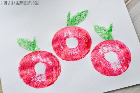 4. Apple Craft with Pool Noodles: A slice of pool noodle is the perfect shape for stamping apples. Find the tutorial over at Glue Sticks and Gumdrops.