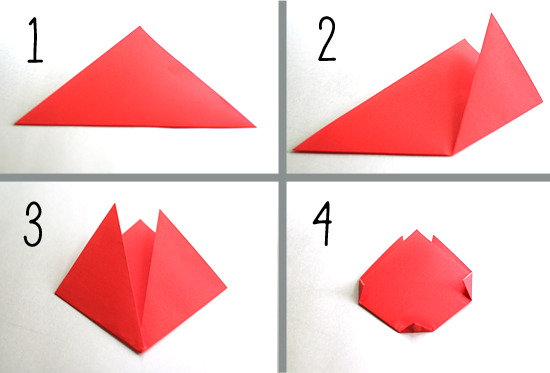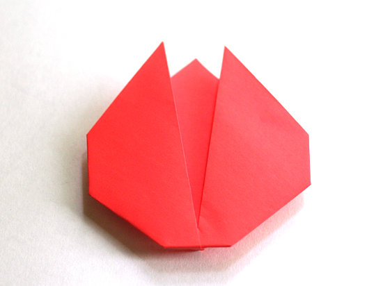 Step 4: Flip the paper over. Fold the side and bottom points in just a bit, to create a more rounded tulip shape.