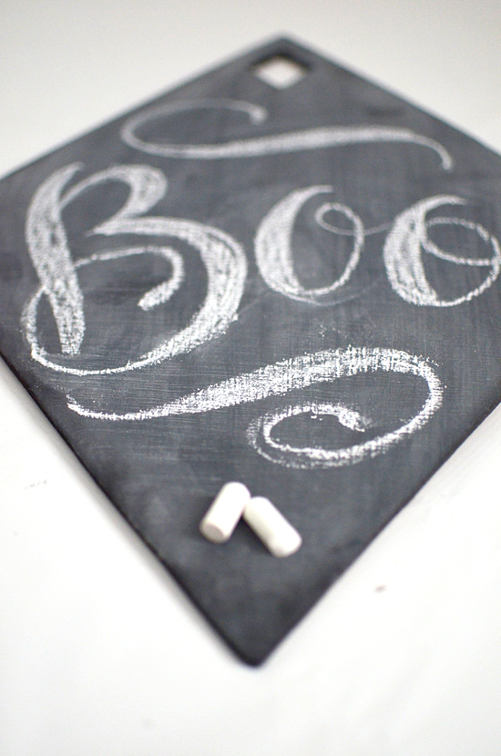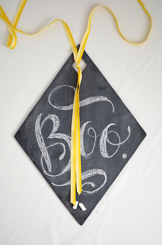 So here’s my take on the chalkboard wreath with a little more space for words and a funky shape (reminiscent of mid-century doors). This project is very straight forward, but I’d like to take you through each step so you can make your own.