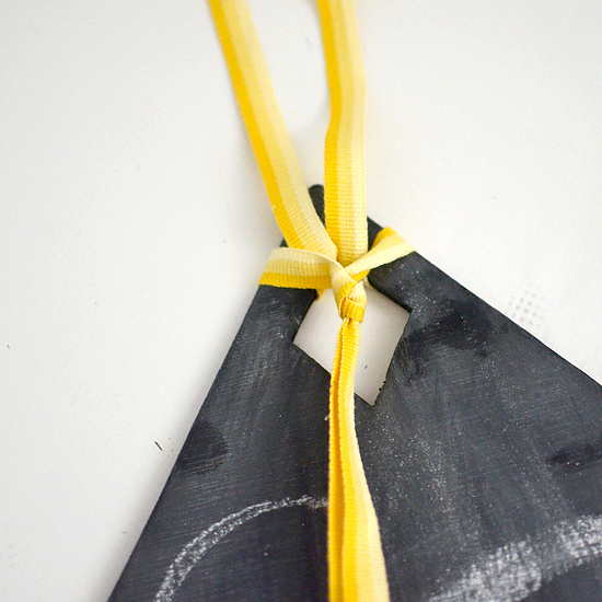 Cut your ribbon 2x the desired length. Tie a knot. Write a little festive message.