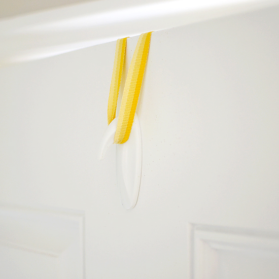 Now I totally wish this idea was my own, but it wasn’t. My friend, Nikki left this little upside down hook on the inside of our front door when they moved out. I can only assume she used it to hold wreaths on the front door. She’s pretty brilliant, right?