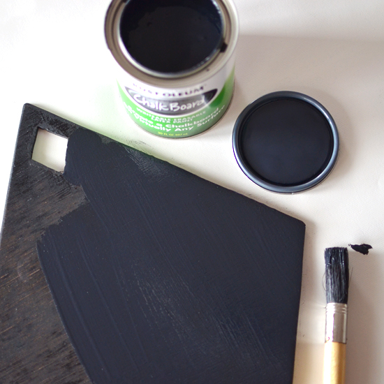 Paint against the grain when applying chalkboard paint. To remove grain entirely, putty or gesso and sand your shape before priming it with spray paint.