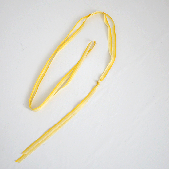 Looped folded end through the hole and under your knot. Tie a bow and trim ends.