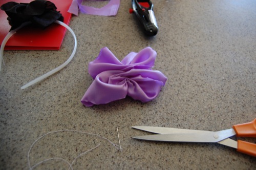 I love all the different fabric flowers there are to make these days. Here is the step by step for a very simple fabric headband. What I love about this one is that you can “slop” it together in a jiffy, and it still looks great!