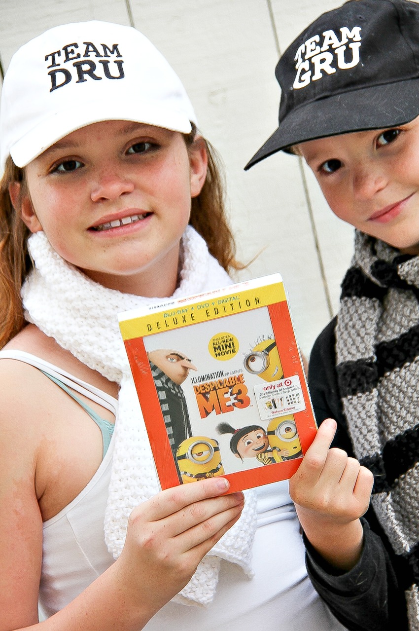 We are so excited that Despicable Me 3 Special Edition is available on Blu-ray and DVD December 5th with our favorite characters Gru, Lucy, and their three adorable daughters – Margo, Edith and Agnes. It will mean lots of cozy nights under blankets during the cooler weather this holiday season as we watch the movie. We may even need to make these fun Minion hats to wear, and indulge in these Minion Ba-Ba-Banana Ice Cream Sundaes too. They’d make the perfect movie watching treat. But for now, I want to share these Dru and Gru handmade knit scarves that make the perfect holiday gift for kids, paired with the movie of course! Are you team Gru or team Dru?
