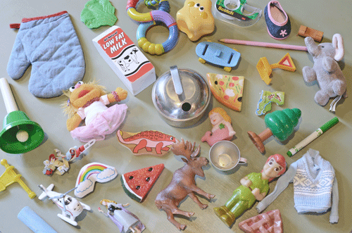So, the other day, while I was actively engaged in mixing up/cleaning the playroom with the kids, I started to notice how the scattered toys reminded me of something…what do you think??