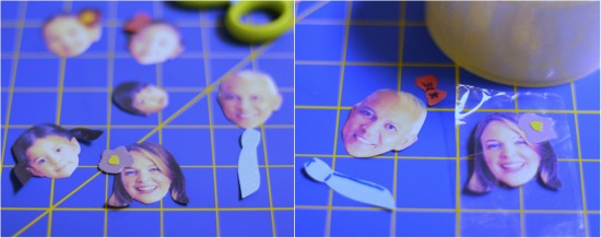 Cut out pictures of your face (faces) making sure to cut out the face only. You can add accessories like bows and ties if you wish.