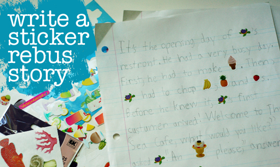 We always seem to have an abundance of stickers around the house. One of our favorite projects to do with stickers is creating sticker rebus stories. Sticker stories are a great way to get the creative juices flowing for young writers.