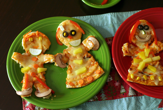 We have no trouble getting our share of sweets during the month of December. It’s the healthy foods we have to be sure to make room for! Here’s a fun hands-on lunch or dinner activity to make with your kiddos – gingerbread boy and girl pizzas. Cute and delicious, and perfect for our Holiday ABC series and our Letter G for Gingerbread.