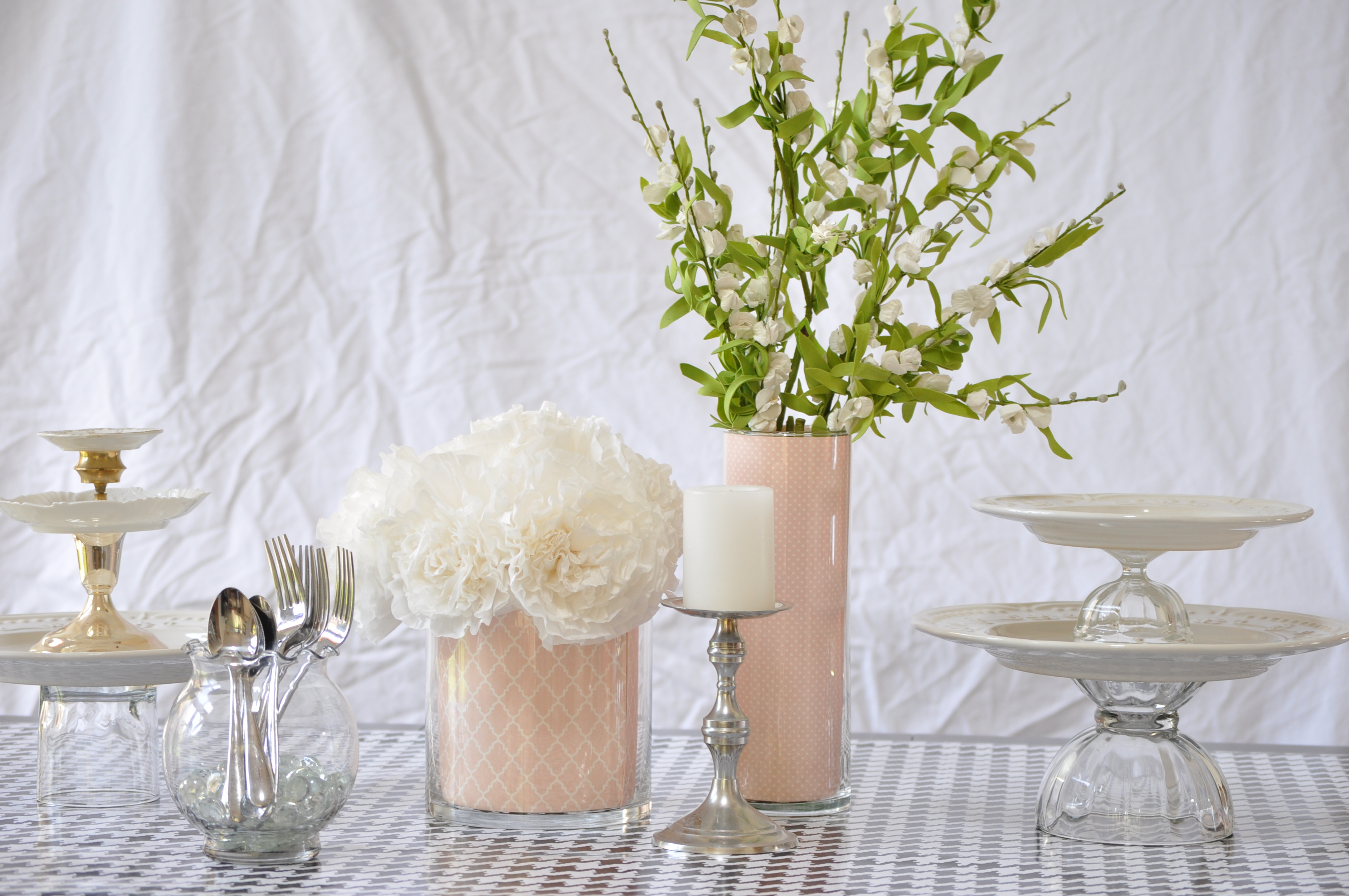 Take any favorite plates and turn them into a raised platter, cake plate, or multi-tiered serving piece with just a few inexpensive supplies. Pair them with my easy vases, and you’ve got the bases covered for parties all year round!