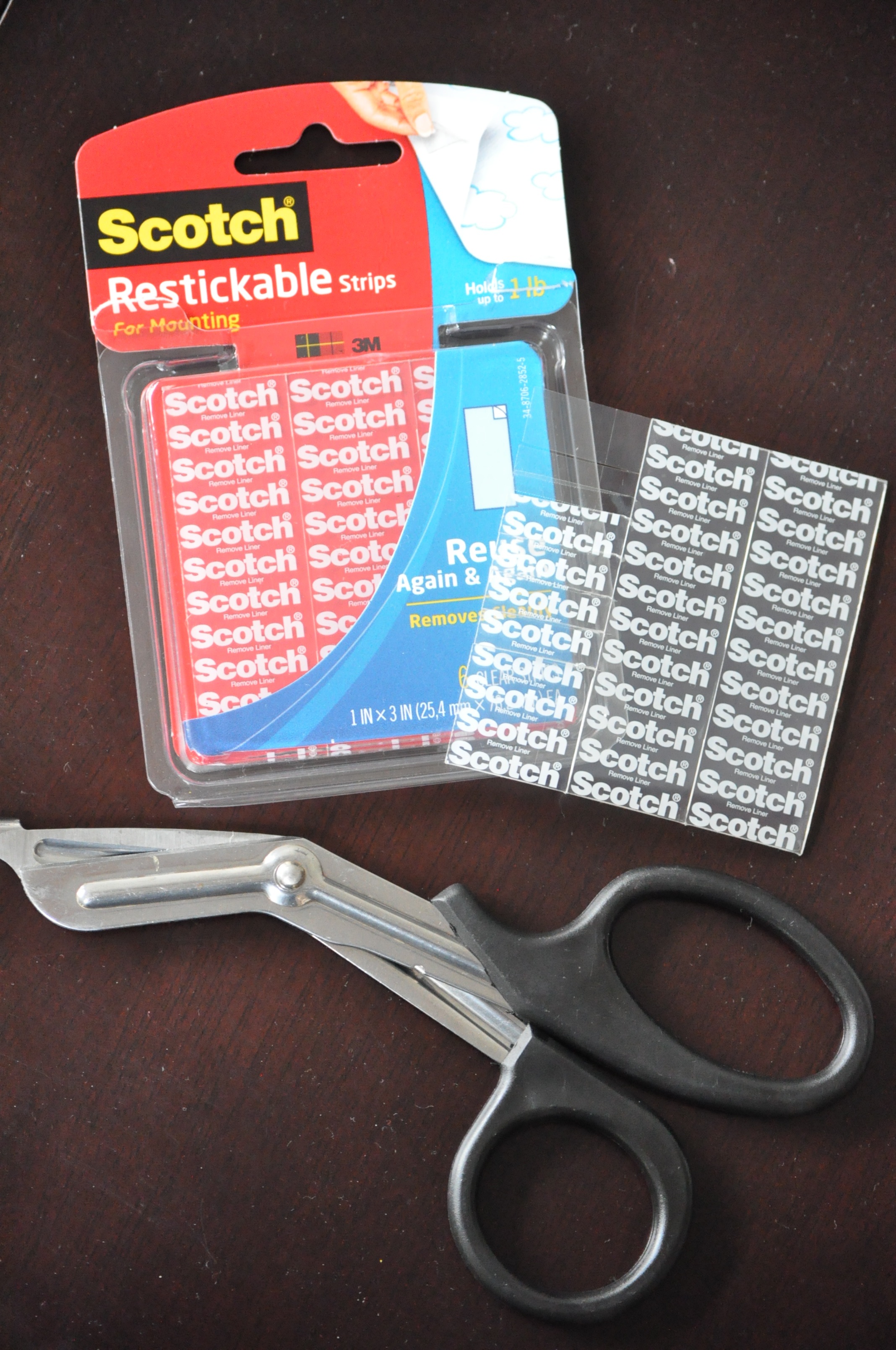 - Re-positionable adhesive strips (I used Scotch’s Restickable Strips) or tacky putty
