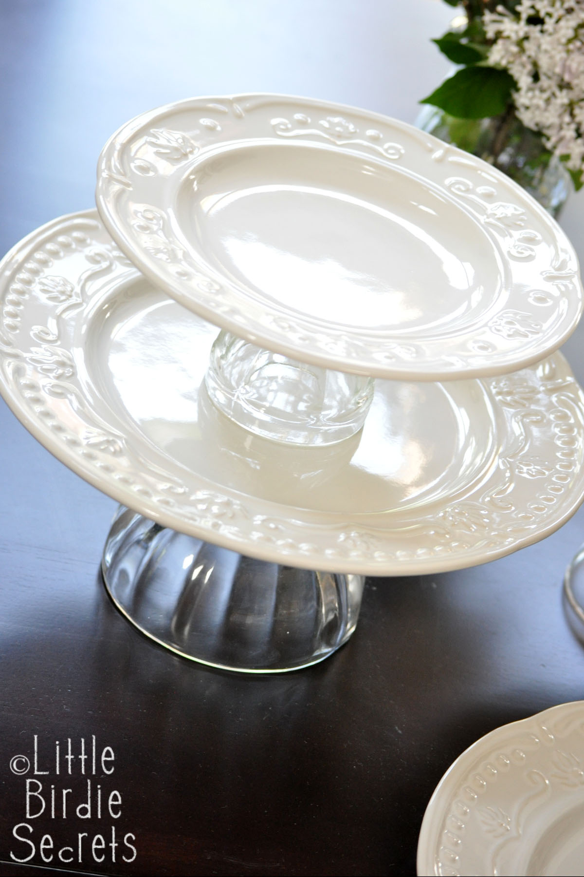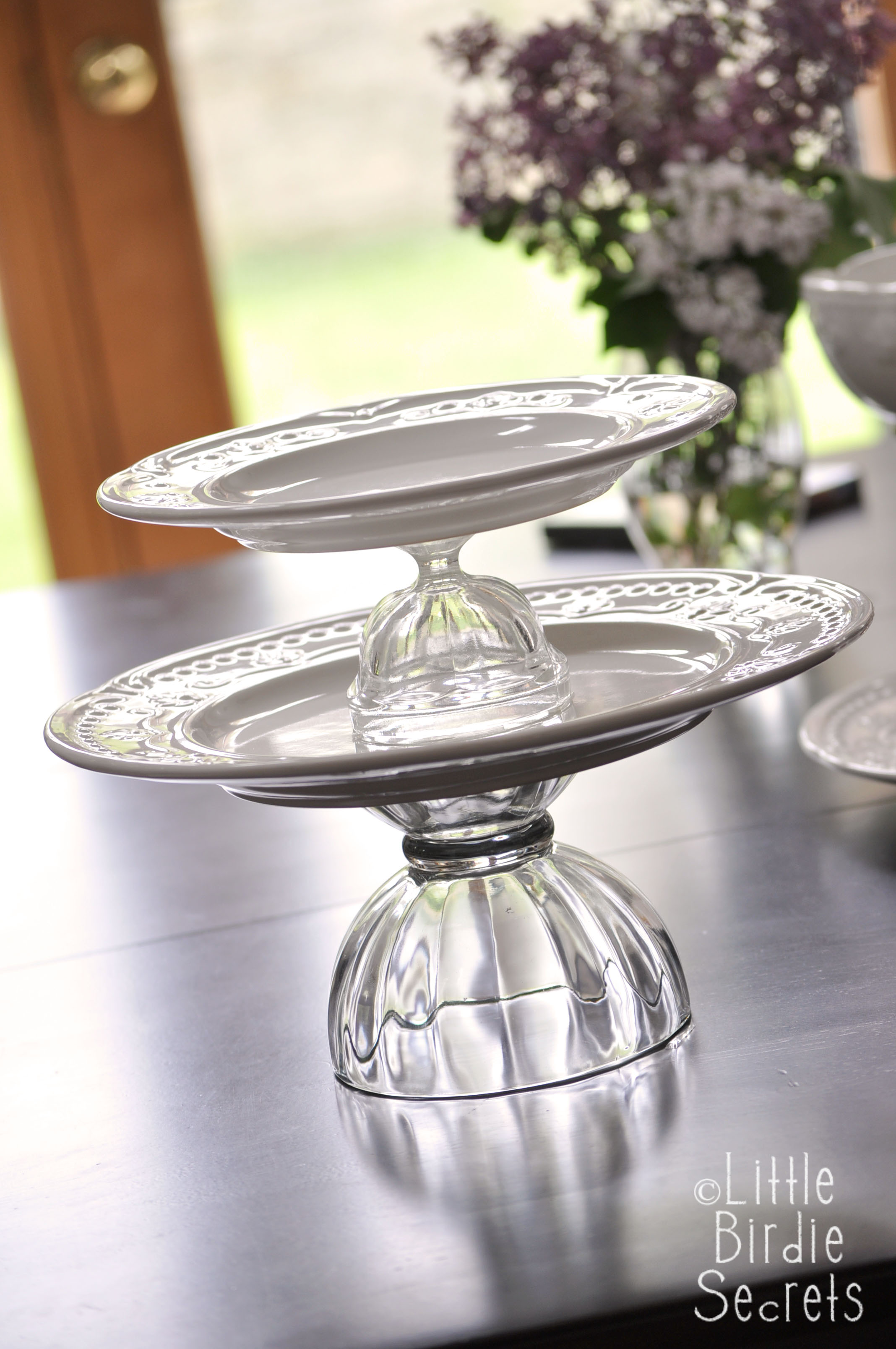 4. Feel free to stack multiple plates to make a multi-level serving dish! One raised plate is a cute cake platter, two is great for cupcakes, cookies, rolls, and more.