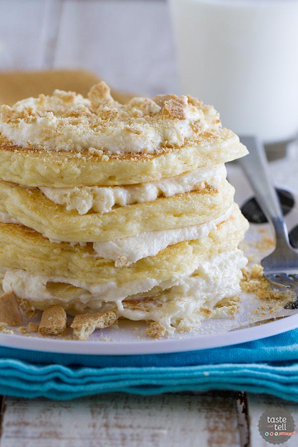 9. Cheesecake Pancakes: Stack these cheesecake pancakes as high as you want- you’re going to love them. Cream cheese frosting, graham cracker crumbs, and fluffy pancakes. YUM. (via Taste and Tell)
