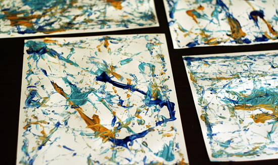 Keep tilting and shaking until you’re happy with your paper. Then replace with a fresh piece of paper, get your bells all painty again, and repeat!