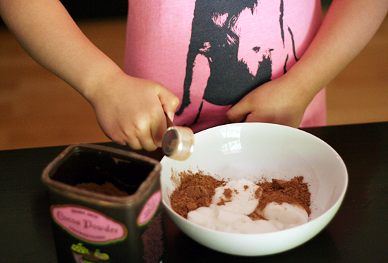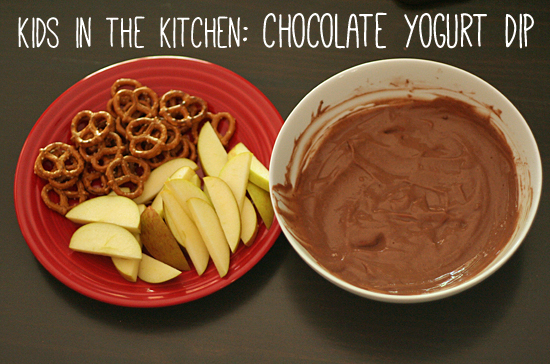Do your kids love dipping? Mine sure do! From our standard veggies with ranch to a more decadent chocolate fondue dessert, my girls are always game for a snack with a dip. Here is a tasty and simple chocolate yogurt dip that kids can whip up on their own – and it’s healthy enough to have for breakfast! If you’re looking for an extra protein boost, be sure to use Greek yogurt.