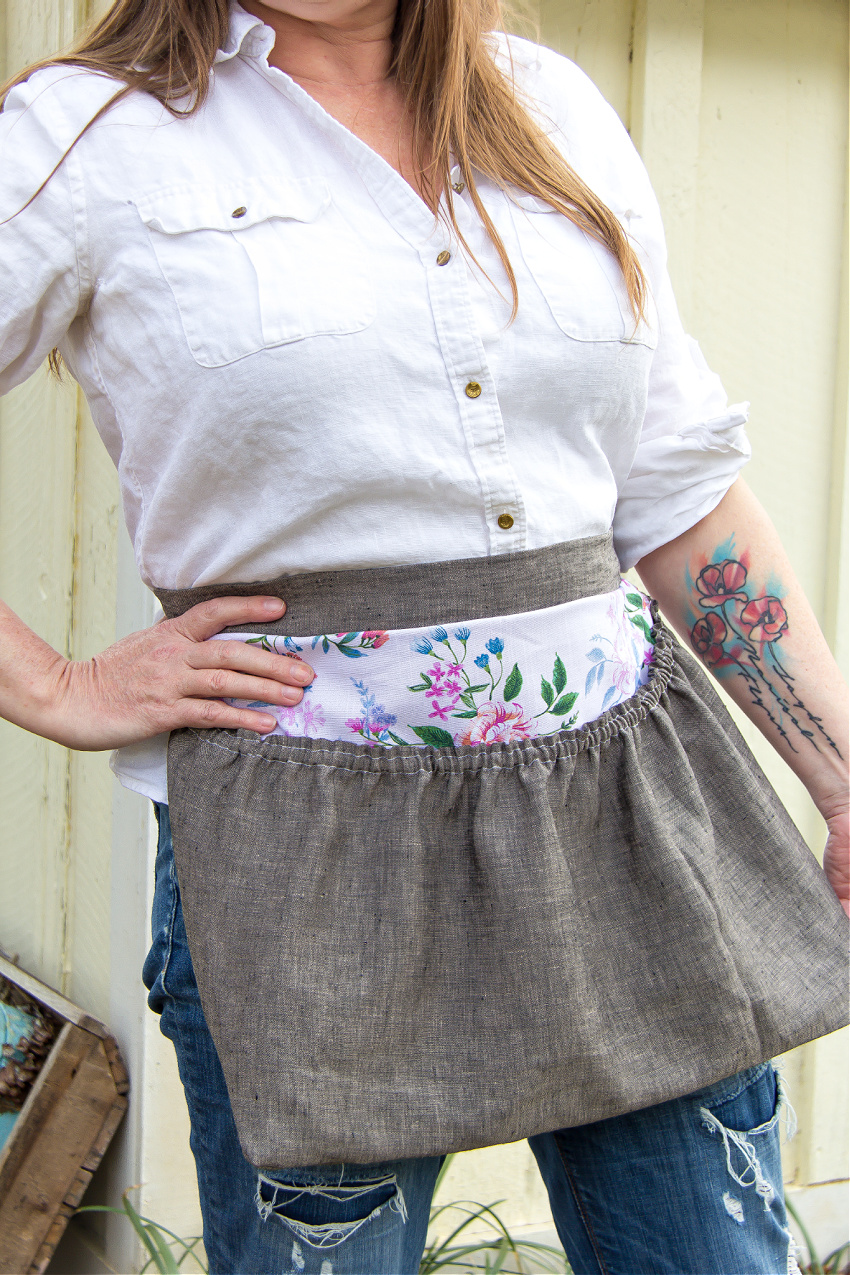 Now you have the perfect waist apron for gathering eggs and fresh produce from your garden.