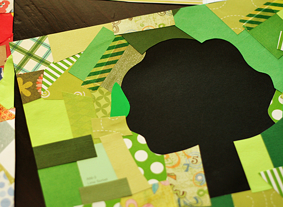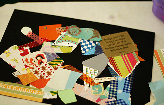 Don’t worry about going over the edge of the background paper. Just trim the edges when your collage is finished.