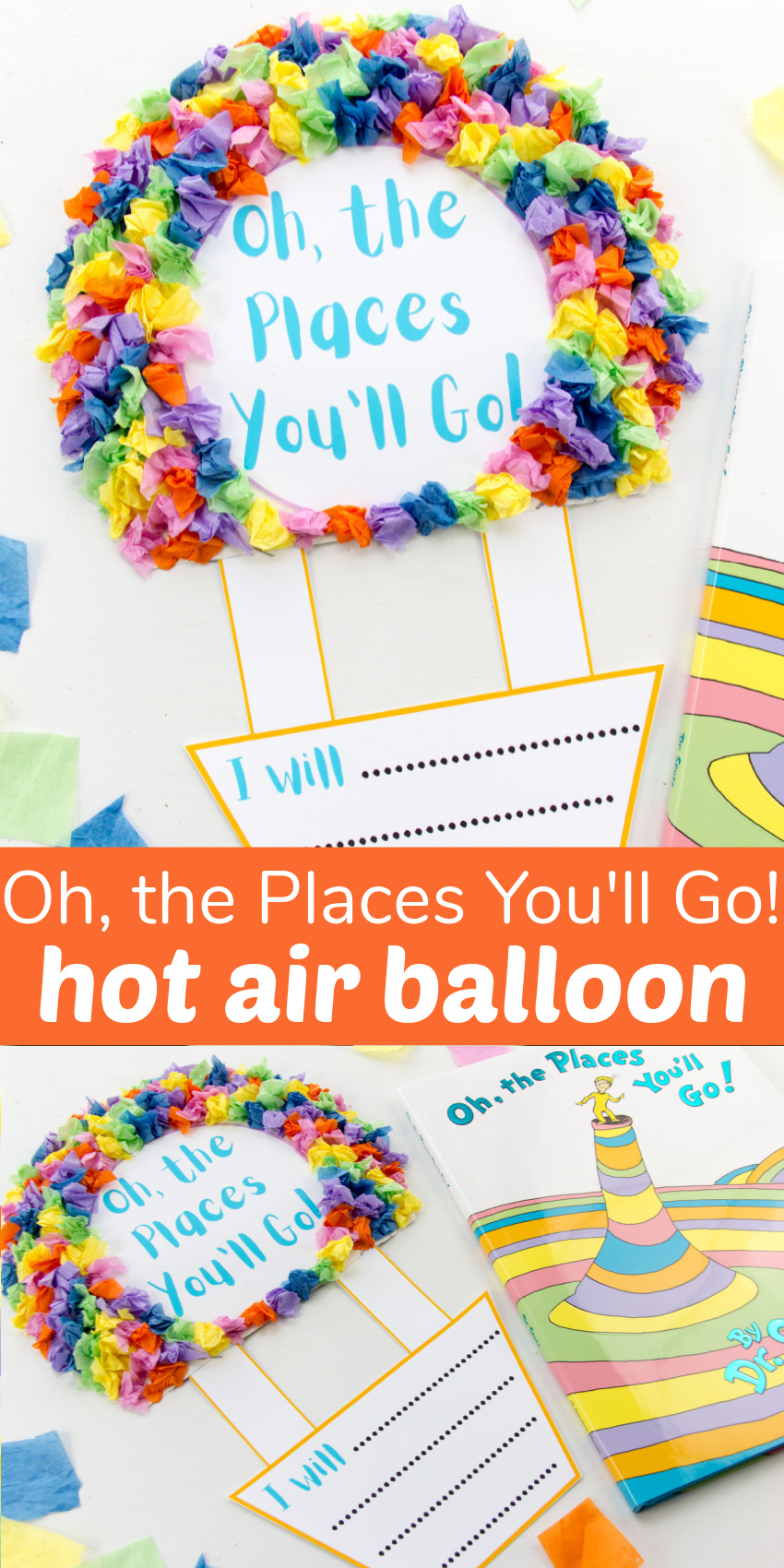 This hot air balloon end-of-year craft, inspired by the Dr. Seuss’ book, Oh, the Places You’ll Go, is perfect for preschool through grade 1. (Although your older kiddos just might like this too :)