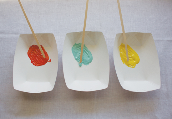1. Add one part fabric medium to two parts paint in a bowl and mix. The fabric medium is more runny than the paint so I just eye it.