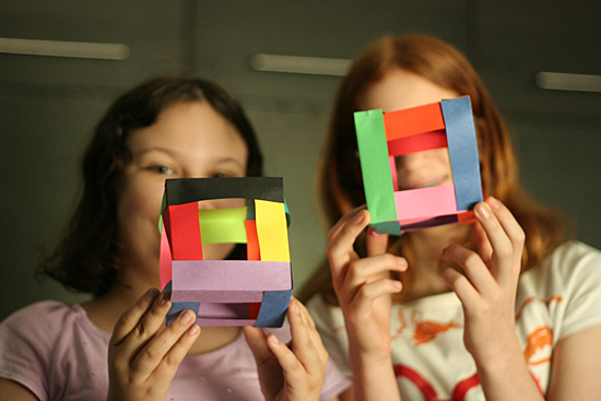 If you make a bunch, you could create an even larger paper sculpture with them, or play with the cubes like blocks. My girls said they would be cute homes for little plastic animals, too.