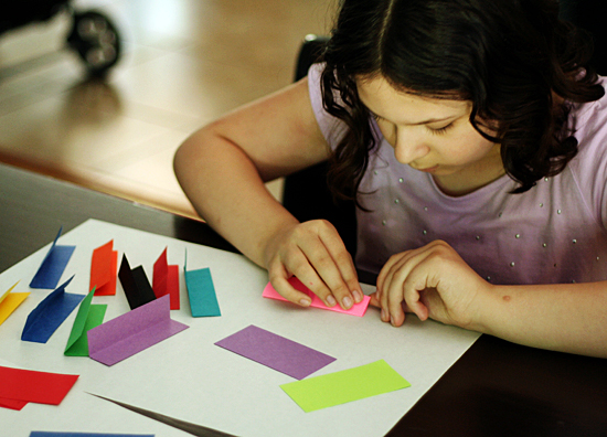 If you make a bunch, you could create an even larger paper sculpture with them, or play with the cubes like blocks. My girls said they would be cute homes for little plastic animals, too.