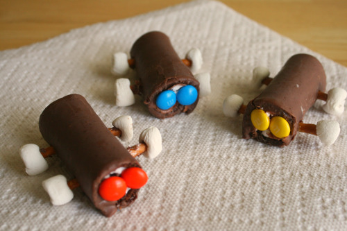 - Make these fun Cake Roll Cars. Stick 2 pretzels into the side of a cake roll. Add mini marshmallows for the wheels and m&m candies for the lights.