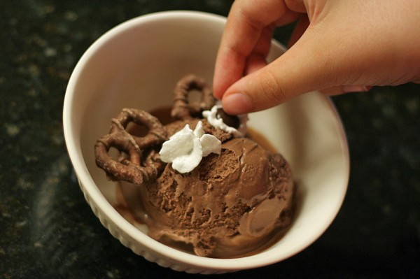Our ice cream was melting like crazy while we decorated, so I recommend scooping your ice cream into bowls, then popping them back in the freezer for a bit before decorating.