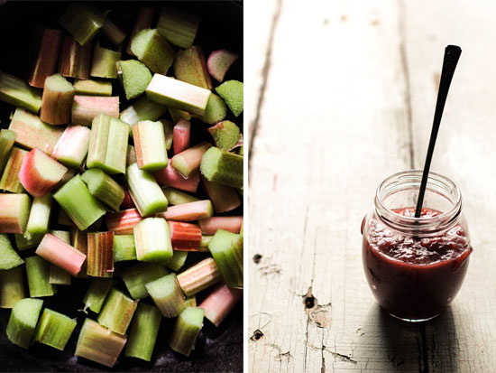 A hint of advice: if the jam isn’t as vibrant as you’d like (some rhubarb is more green than others), a single drop of red food coloring can do the trick.