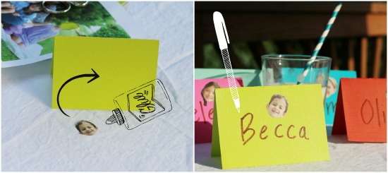 Once you make these place cards, instantly you’ve set the mood for a fantastic afternoon! The best part is that these are so easy to make, you can craft them in full-on, multi-task, “Quick! The kids will be home in 30 minutes!!” mode. You could even make this an after school craft activity to make with your kiddos. They’ll love using their handiwork with their snacks. Read on for the full tutorial.