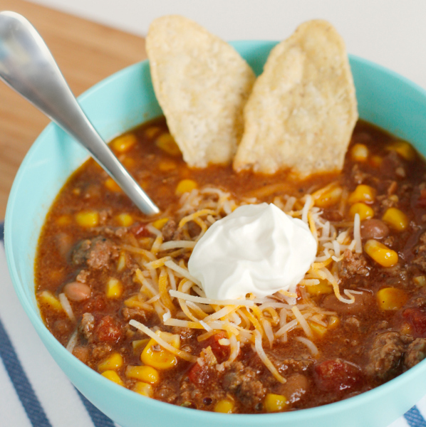 Everyone in our family loves it. It’s great for big groups too, if you’re hosting another family. Pair with with some chips and sour cream for toppings. I love corn chips or tortilla chips. This could also work really well as a dip too, like salsa. Host a party and serve up some yummy taco soup!