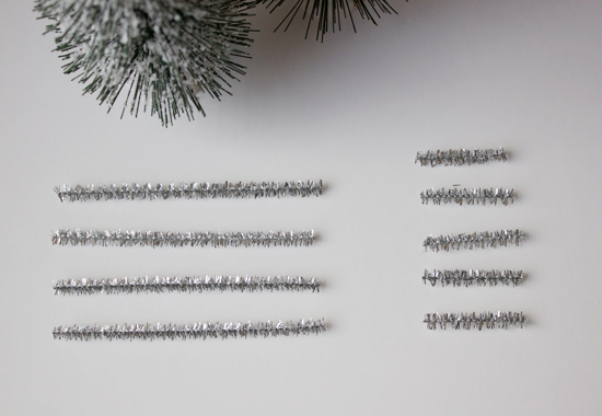 Begin by cutting your pipe cleaners. You’ll need four 4″ pieces and five 1 1/4″ pieces.