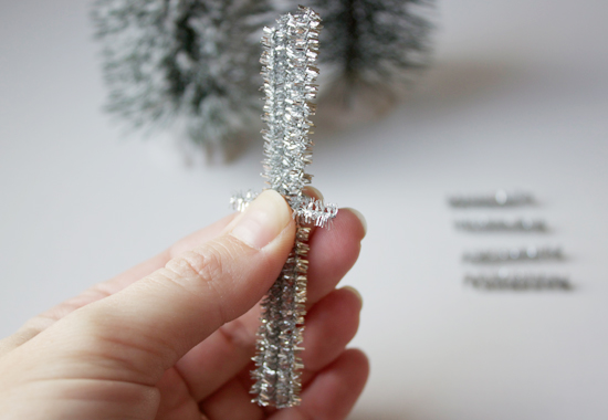 All you need for one snowflake is 2 silver pipe cleaners and a pair of scissors.