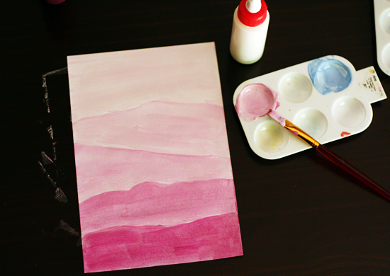 I love the simple beauty of these monochromatic landscapes. My girls have plans to make one in every color of the rainbow and display them in a row on the wall. Won’t that be lovely?
