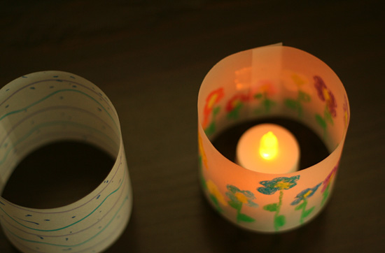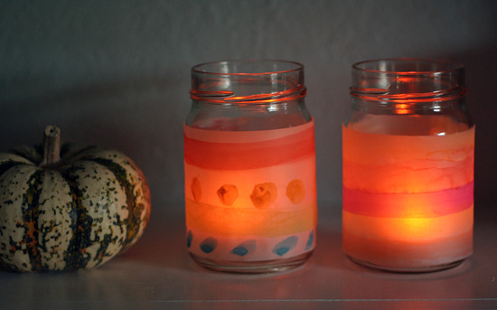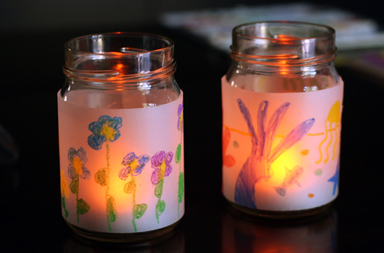 You could make new covers to change with the seasons, plus this is a great craft for a wide variety of ages. They also look pretty unlit, and would make adorable vases. I just love having little glowing pieces of my girls’ artwork on our table and mantle.