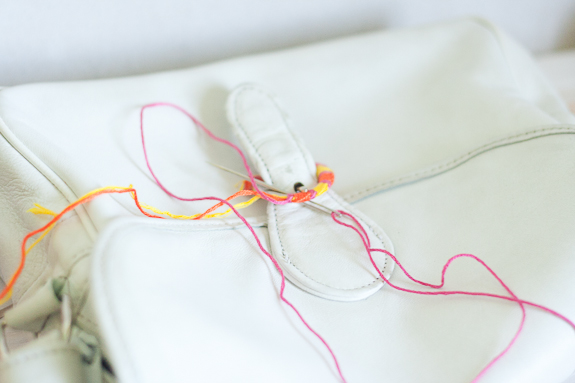 I love thrifting, and I love nothing more than bring home a slightly shabby treasure and giving it a face lift! My latest find was a somewhat dingy white leather purse, that I added some summer colors to.
