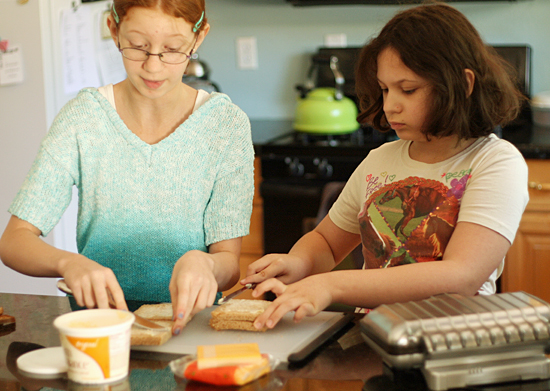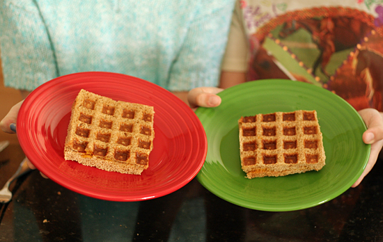 My Pinterest feed has been filled with all kinds of foods you can make in a waffle iron – from hash browns to cookies to French toast. We decided to try some creative waffle iron cooking with one of my girls’ favorite lunches – Waffle Iron Grilled Cheese sandwiches. They were a hit and so simple!