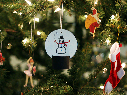 Decorate each snow globe using crayons. We added lots of white snowflake dots on ours, too.