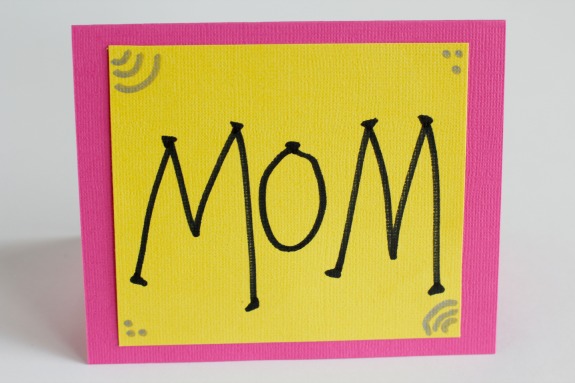 Fold your paper in half. Write the word MOM on the front side – in all capital letters for the best effect! Open up the card write WOW on the inside of the card!