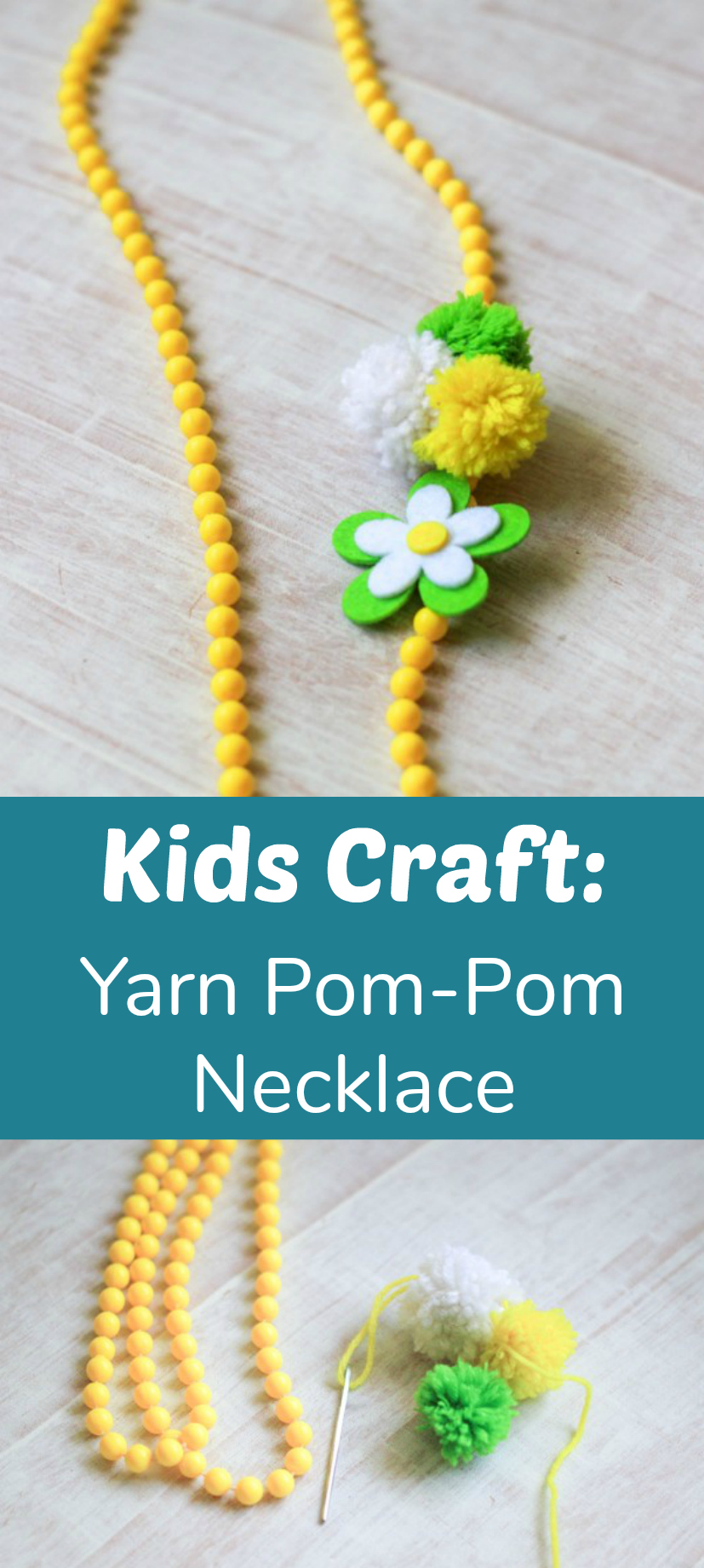 Yarn Pom-Pom Necklace Accents: Want a super easy piece of DIY jewelry that your child can make and wear? This yarn pom-pom necklace can be made in under an hour and can be reused in many ways.